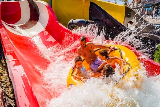 - Parque acuático para todos los públicos y atracciones de infarto.