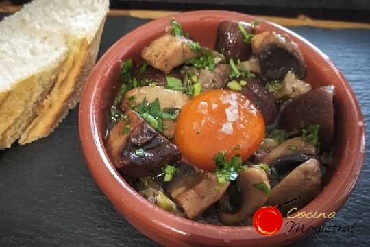 - Cazuelita de setas con yema curada.