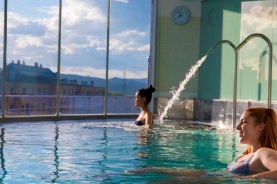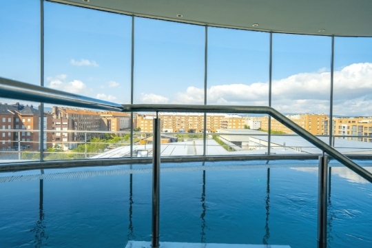 Los huéspedes pueden disfrutar de un pequeño, pero coqueto spa ubicado en la planta más alta del hotel con vistas a la ciudad. Dispone de piscina de hidromasaje, sauna seca, fuente de hielo para los contrastes y tumbona térmica. Además, cuenta con cafetería, restaurante con un amplio menú del días, así como garaje cubierto.