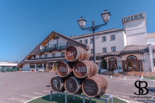 Hotel ITC Ciudad de Haro by Soho Boutique. Se encuentra en una ubicación privilegiada en La Rioja, rodeado de viñedos y muy cerca del centro histórico de Haro, capital del vino. Sus habitaciones están equipadas con aire acondicionado, televisión, baño privado y conexión Wi-Fi gratuita. El hotel cuenta con piscina exterior de temporada, amplios jardines y parking gratuito. En los alrededores podrás visitar prestigiosas bodegas, recorrer el casco antiguo de Haro, disfrutar de la gastronomía riojana y explorar rutas enoturísticas únicas.