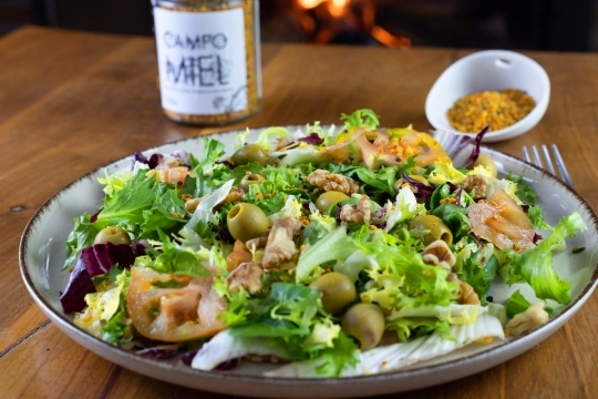 - Ensalada de la huerta con vinagreta de miel y polen.