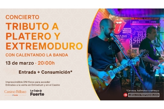 - Entrada para 'Tributo a Extremoduro y Platero' + consumición el 13 de marzo a las 20:00hrs por 9,50€/persona.