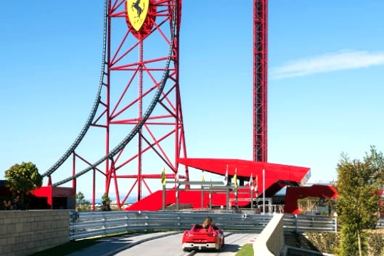 Ferrariland. Vive la auténtica experiencia Ferrari en más de 70.000 m2 de emoción, adrenalina y diversión. Prepárate para disfrutar de la tecnología e innovación más impresionante en las atracciones y experiencias del 3er parque temático de PortAventura World Parks & Resort.