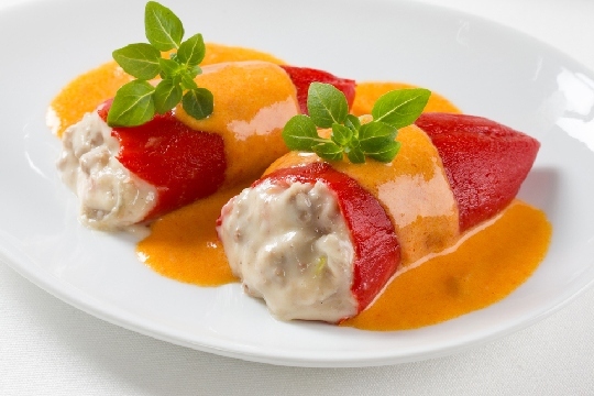 - Pimientos rellenos de marisco con salsa de necoras.