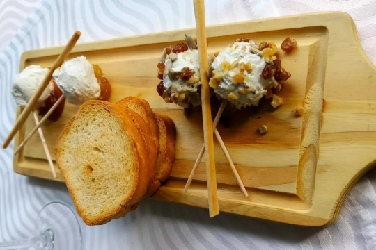 - Mousse de queso, con mermeladas caseras y pan crujiente.