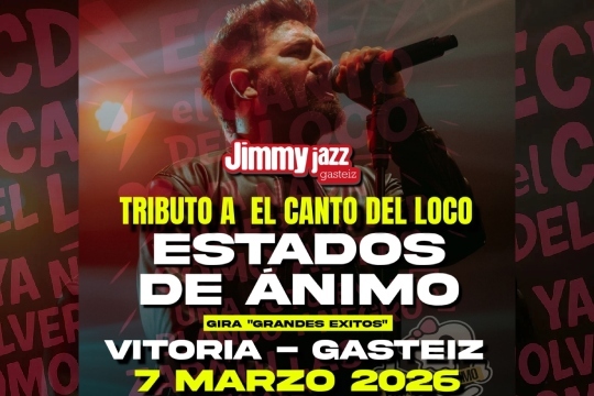La banda Mallorquina "Estados de Ánimo", reconocidos por el líder de El Canto del Loco (Dani Martín), como la mejor banda homenaje a El Canto del loco del país, llegan por primera vez a Vitoria para presentar su espectacular directo que les hará recorrer los grandes éxitos de una de las bandas más importantes de nuestro país como ha sido El Canto del Loco.