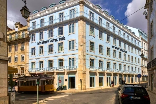 My Story Hotel Tejo. Se halla en la Baixa Pombalina, a solo metros de la Praça da Figueira y del Rossio. Ocupa un edificio del siglo XIX renovado con estilo contemporáneo y sus habitaciones ofrecien aire acondicionado, WiFi, TV, caja fuerte y baño privado. El hotel dispone de desayuno buffet, recepción 24h, consigna de equipaje y servicio de traslado. Su ubicación privilegiada permite explorar a pie lugares como el Castillo de San Jorge, la Rua Augusta, el Elevador de Santa Justa y el Barrio de Alfama.