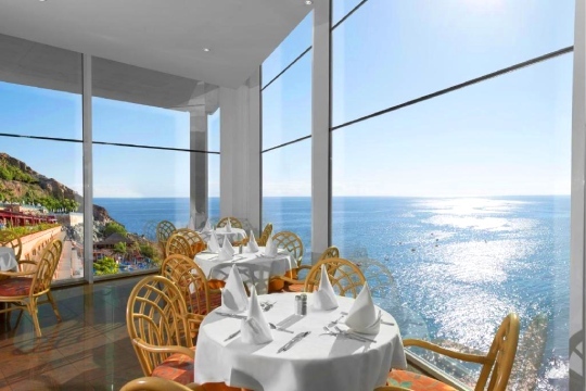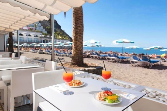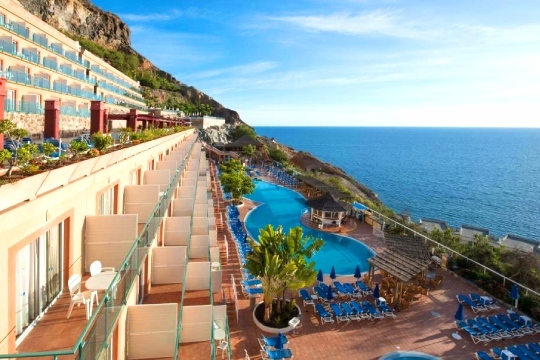 Hotel Mogan Princess & Beach Club. Resort de 4 estrellas en Mogán, Gran Canaria, ubicado en un acantilado de Taurito, con vistas impresionantes al océano. Sus habitaciones en su mayoría tienen vistas al mar, además están equipadas con aire acondicionado, TV vía satélite, minibar, caja fuerte y baño privado. El hotel dispone de tres piscinas al aire libre, incluyendo una piscina panorámica exclusiva para adultos, y una piscina climatizada todo el año. También ofrece un club infantil gratuito, discoteca y un spa con masajes. El restaurante es bufé con cocina en vivo. El régimen "Todo Incluido" cubre comidas y bebidas en sus 5 bares o salones, incluyendo 2 bares junto a la piscina. La Playa de Amadores está a 10 km.