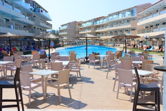 Angela Beach Hotel & Apats. Se halla frente al mar Jónico en Astrakeri, Corfú. Las habitaciones son equipadas con aire acondicionado, baño privado, televisión y balcón, muchas con vistas al mar o al jardín. El hotel dispone de piscina al aire libre, restaurante buffet, bar y servicio de transporte gratuito a Roda. Desde el hotel, es fácil explorar lugares como el Canal d’Amour, el casco antiguo de Corfú, y las playas de Sidari y Roda