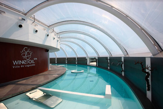 El Wine Oil Spa es uno de los mayores atractivos del Hotel Villa de Laguardia. Un espacio para la relajación caracterizado por su enorme cúpula que permite hacer sesiones de cromoterapia durante la noche y disfrutar de la luz natural durante el día. El Wine Oil conforma un circuito Spa con diferentes estaciones entre las que destacan duchas de contrastes, sauna finlandesa, baño turco, una fuente de hielo y mucho más.